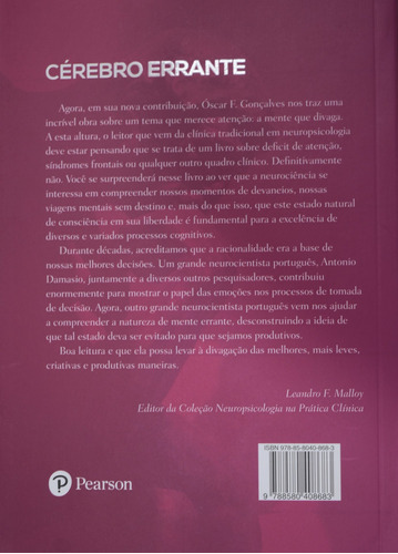 Autor do primeiro título da Coleção Neuropsicologia na Prática Clínica, o Neuromodulação autorregulatória: Princípios e prática, Óscar F. Gonçalves lança outra obra que aborda o cérebro, dessa vez com a temática da mente errante. Em 5 capítulos bem estruturados e uma conclusão a respeito do tema, o autor apresenta o processo de divagação mental e explica quais são as suas causas, os seus benefícios e a sua importância para a nossa cognição.