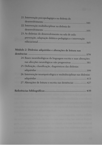 A dislexia de desenvolvimento ou transtorno específico de aprendizagem da leitura é caracterizada por dificuldades para ler de forma correta e fluente, que não são consistentes com a idade cronológica, as oportunidades educacionais ou as habilidades intelectuais. Apesar da presença do tema em inúmeros estudos nas mais diversas áreas, o enfoque neuropsicológico interdisciplinar no Brasil não é o preponderante nas produções em forma de livro, sendo essa publicação importante para os profissionais e estudantes que gostariam de se aprofundar nas discussões acerca deste transtorno.